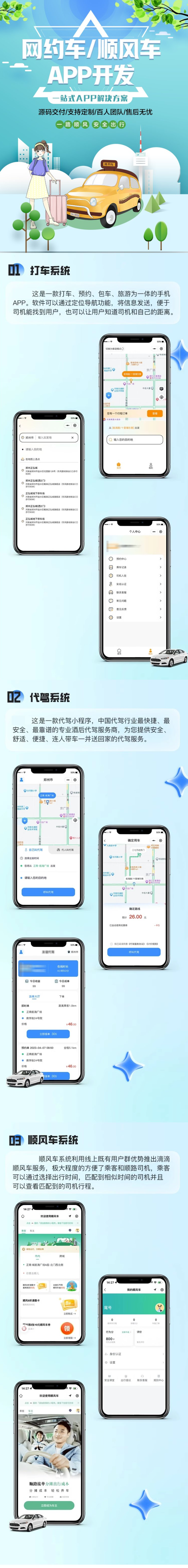 顺风车网约车APP打车代驾拼车租车包车小程序系统软件定制开发